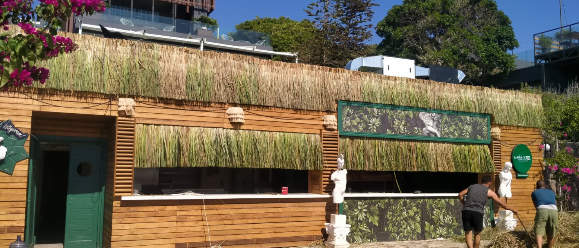 Bambu, kirpi çatı ve doğal malzemelerle mekanlarınıza estetik, serin ve huzurlu bir dokunuş katıyoruz.
